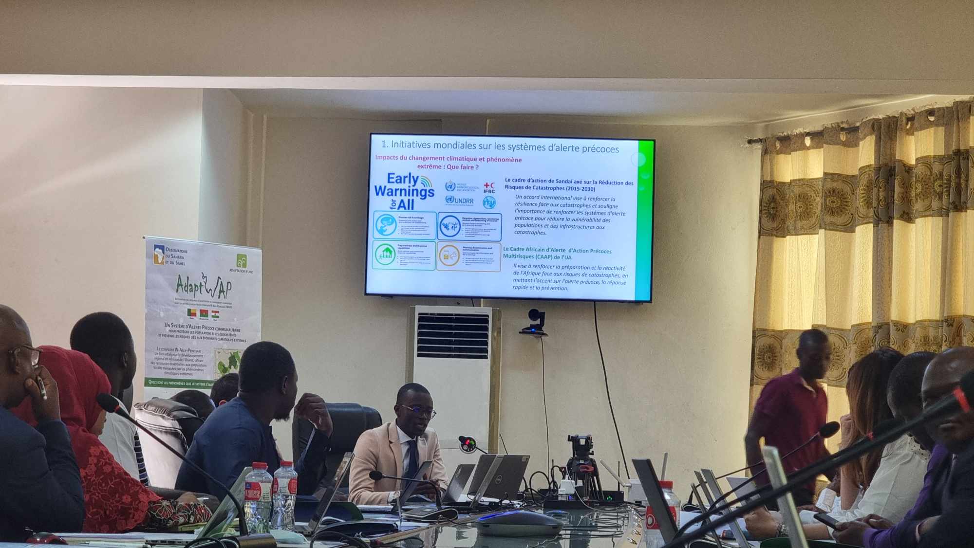 This meeting aimed at informing decision-makers and system users of the start-up of the Multi-Risk Early Warning System (MR-EWS) for the benefit of the W-Arly-Pendjari complex communities, made it possible to make a practical demonstration of the platform. In this regard, the representative of the (BRl Ingénierie) Design Office presented concrete details, in particular, the data used to feed the prototype, thus ensuring optimal accuracy. It is worth mentioning that the current prototype is designed in such a way that it allows the integration of new data sources to closely follow the evolution of the data monitoring network.