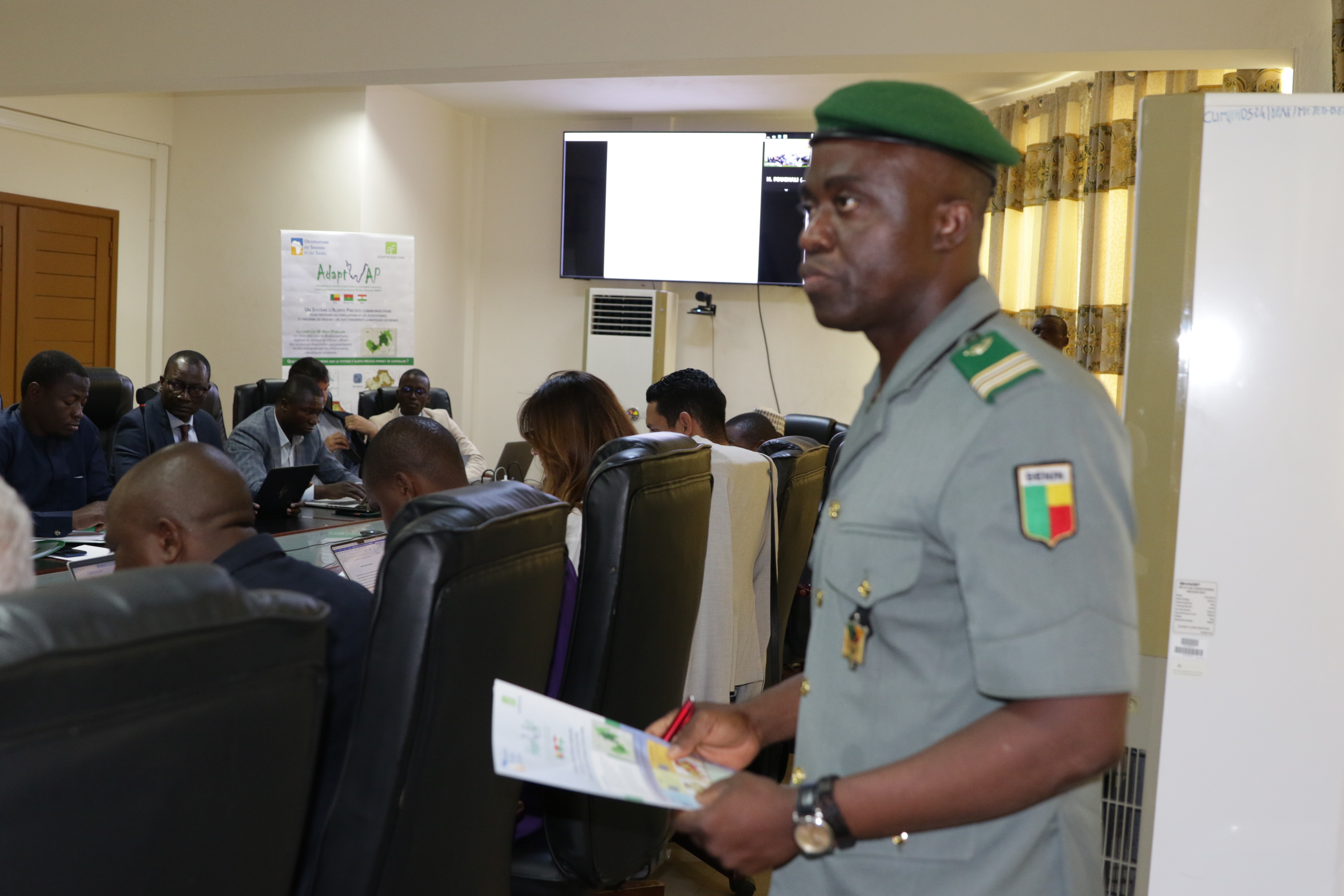 The event was attended by representatives of national entities and stakeholders from the three countries sharing the WAP Complex, namely the General Directorate of the National Center for Wildlife Reserve Management – CENAGREF, the Director General of the National Office of Protected Areas of Burkina Faso - OFINAP, the Director General of Water and Forests of Burkina Faso, the national coordinators of the AdaptWAP project in Benin, Burkina Faso and Niger, the representative of the AGRHYMET/CILSS Regional Center, the Executive Director of the West African Savannah Foundation FSOA, and representatives of community organizations (AVIGREF - Pendjari), the civil society and the media. The regional Execution Units (PMUs) and Implementation Units (IUs) of the project, represented by Mr. Abdoulkarim Bello, AdaptWAP project Coordinator at the regional level, and Mrs. Khaoula Jaoui, OSS Climate Department Director, also took part in the event.
